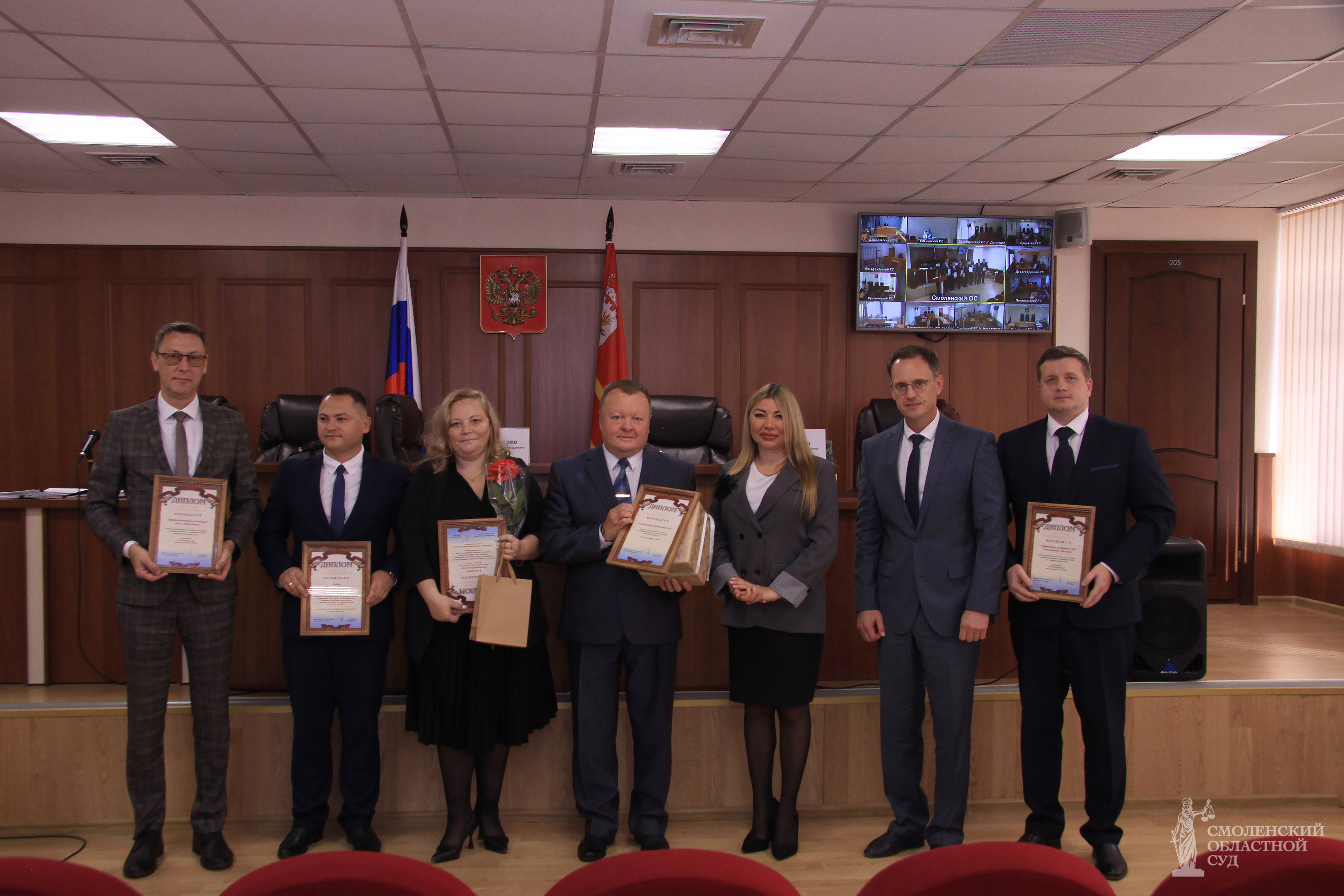 Мероприятие проходило под руководством председателя Смоленского областного суда Шепелина Е.А. В нем также приняли участие заместитель председателя областного суда по гражданским и административным делам Киселев А.С., и.о. заместителя председателя суда по уголовным делам Кива Г.Е., начальник Управления Судебного департамента в Смоленской области Шутов Д.В., начальник службы по обеспечению деятельности мировых судей региона Колесников Р.А., судьи Смоленского областного суда, председатели районных (городских) судов области, судьи районных (городских) судов области и мировые судьи судебных участков г. Смоленска и Смоленской области (посредством ВКС). В торжественной обстановке председатель Совета судей Смоленской области, заместитель председателя Смоленского областного суда Киселев А.С. вручил награды победителям конкурса «Судебная тематика на страницах СМИ».