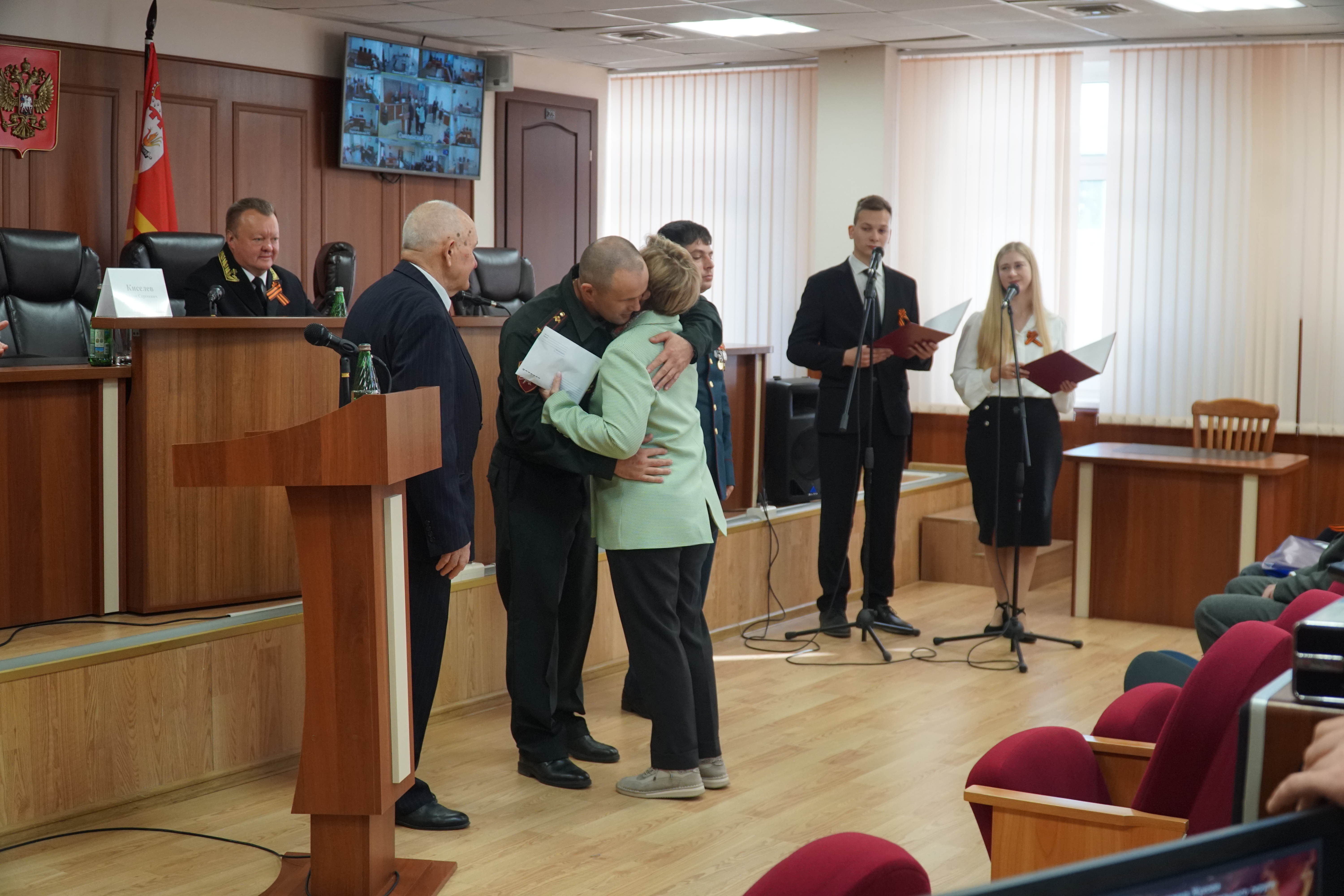На сегодняшний день в судебной системе региона в живых не осталось ни одного ветерана войны. Но остались «дети войны». Те, чьё детство и юность выпали на страшные военные годы, те, кто на собственных плечах вынес все тяготы и лишения послевоенного времени, те, кто наравне со взрослыми восстанавливал разрушенную, но не побежденную страну, те, кто своим стремлением и желанием жить, является примером для будущих поколений. В этот праздничный день на мероприятии смог присутствовать только один ветеран судебной системы, пребывающий в статусе «дети войны» – председатель 80-го гарнизонного военного суда Московского военного округа Лымарь Александр Тихонович, 1942 года рождения. Его стаж работы в должности судьи составляет 38 лет. От судейского сообщества для него звучали слова поздравлений и был вручен памятный подарок. «Детям войны», которые не смогли принять участие в собрании, подарки будут переданы в ближайшее время. Не оставило присутствующих равнодушными выступление заведующего музеем «Смоленщина в годы Великой Отечественной войны 1941-1945 гг.» Целуева А.М., который рассказал о событиях времен оккупации Смоленской области немецко-фашистскими захватчиками.