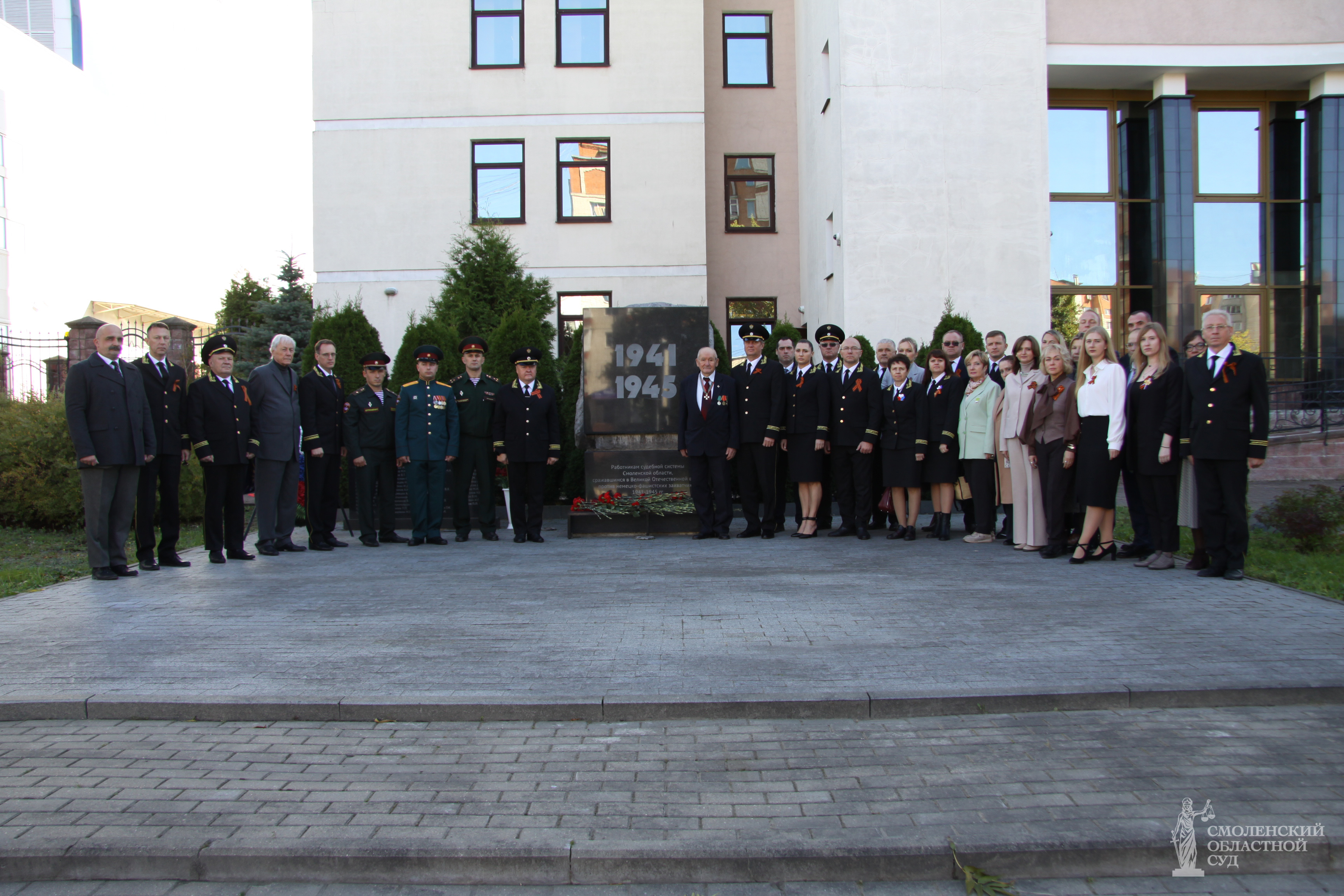 Торжественное мероприятие завершилось традиционным возложением цветов к памятнику работникам судебной системы Смоленской области, сражавшимся в Великой Отечественной войне 1941-1945 годов против немецко-фашистских захватчиков, установленному у здания Смоленского областного суда.