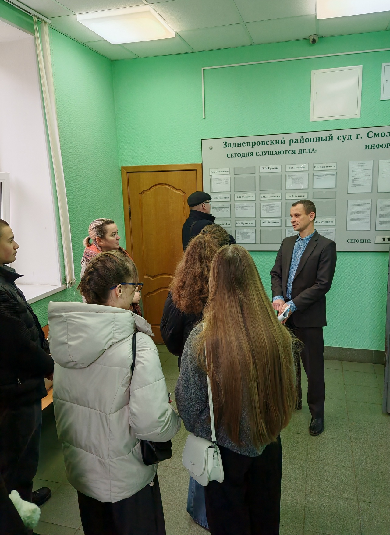 Судами города Смоленска и области объявлен третий сезон регионального конкурса «Смоленская школа правосудия». Проект организован Смоленским областным судом совместно со Смоленским государственным университетом, Министерством образования и науки Смоленской области, Управлением Судебного департамента в Смоленской области в целях обеспечения доступа учащихся старших классов общеобразовательных школ города и области к системе правосудия, а также формирования у них интереса к юридической профессии и понимания роли данной ветви власти в жизни общества. Два прошедших сезона конкурса продемонстрировали актуальность мероприятия и неподдельный интерес к судебной системе со стороны обучающихся и их наставников, приятно удивили самоотдачей, положительным настроем конкурсантов, а также креативностью подхода к прохождению творческих заданий. 11 ноября 2025 г. Заднепровский районный суд г. Смоленска радушно принимал первых участников предварительного этапа конкурса – ребят, обучающихся в 10 «Б» классе МБОУ ЦО № 1 «Академия детства». Экскурсию для гостей провёл заместитель председателя Заднепровского районного суда г. Смоленска Андрей Владимирович Калинин, который рассказал о деятельности суда, символах судебной власти, категориях рассматриваемых дел, требованиях, предъявляемых к кандидатам на должность судьи, интересных делах из судебной практики. Андрей Владимирович ответил на многочисленные вопросы ребят и их руководителя. Обратил особое внимание на необходимость добропорядочного поведения вне зависимости от дальнейшего выбора профессии. Начальник гражданского отдела Наталья Валентиновна Кудимова с целью ознакомительного представления рассказала ребятам об организации деятельности гражданского отдела суда, показала общественную приёмную. Судья Заднепровского районного суда г. Смоленска Владимир Михайлович Мартыненко прочитал короткую лекцию о юридической профессии в целом, а также непосредственно о специфике работы в суде и её привлекательности для молодого поколения.