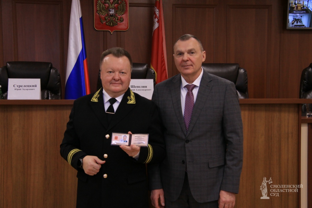 12.12.2025 в торжественной обстановке в ходе ежемесячного совещания с председателями районных/городских судов региона Главный федеральный инспектор по Смоленской области аппарата полномочного представителя Президента Российской Федерации в Центральном федеральном округе Стрелецкий Ю.Э. вручил председателю Смоленского областного суда Шепелину Е.А., назначенному Указом Президента Российской Федерации от 14.11.2025 № 840 «О назначении судей федеральных судов…», служебное удостоверение. В ходе торжественного вручения Юрий Эдуардович поздравил Евгения Александровича с повторным назначением на вышеуказанную должность, отметил качество работы всей судебной системы Смоленской области, а также пожелал новых профессиональных успехов в деле отправления правосудия.