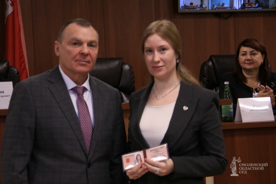 Также служебное удостоверение было вручено судье Велижского районного суда Смоленской области Рощиной Е.И. в связи с переменой фамилии (в связи со вступлением в брак).