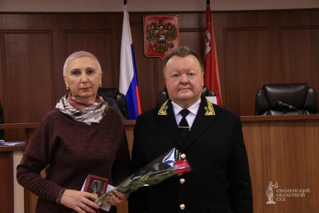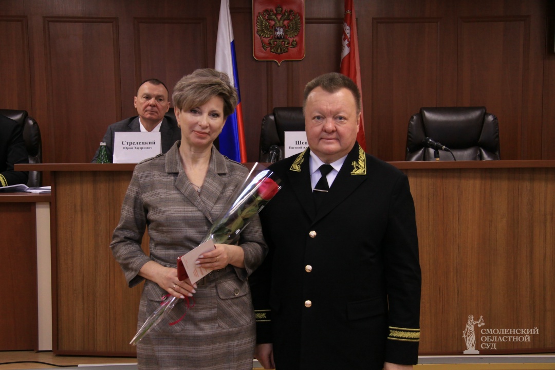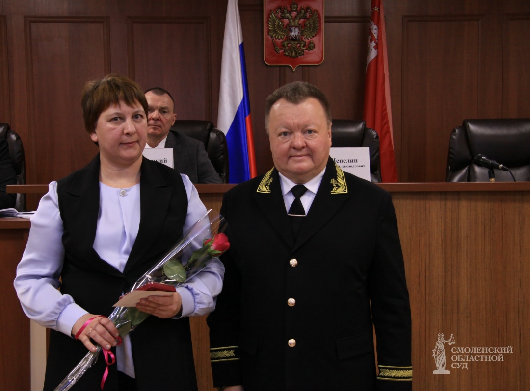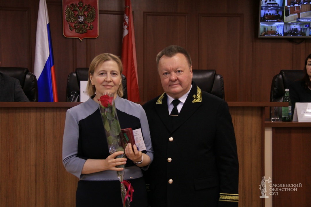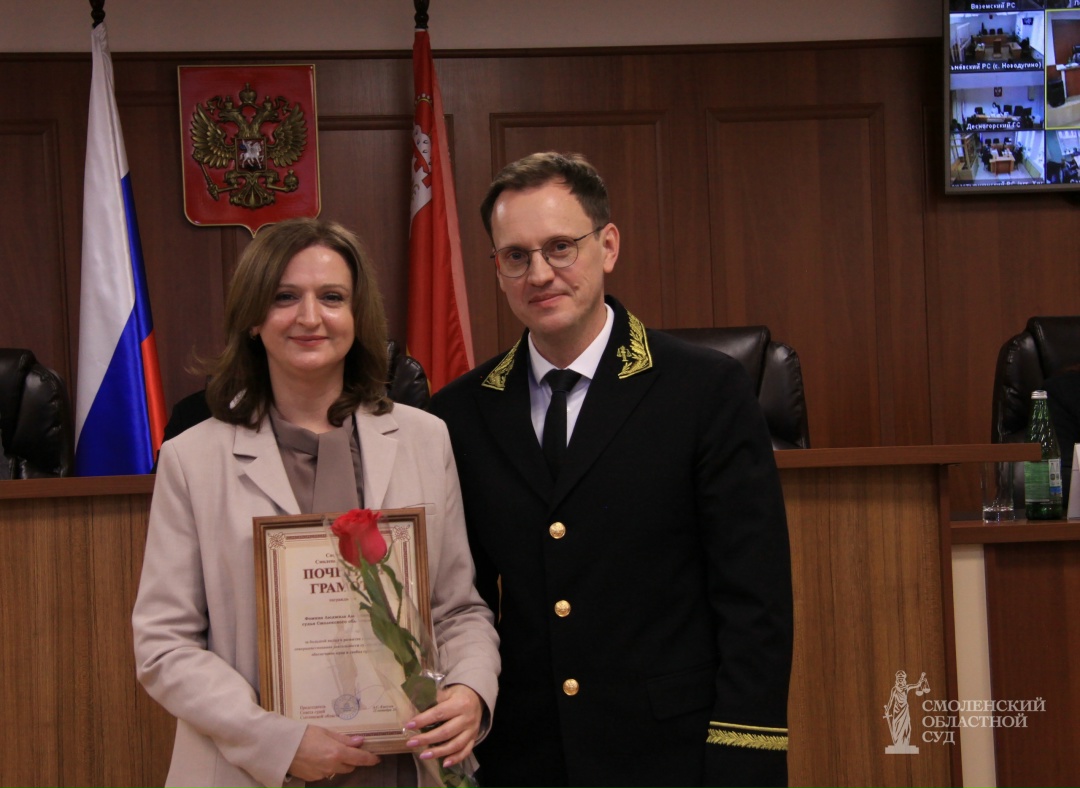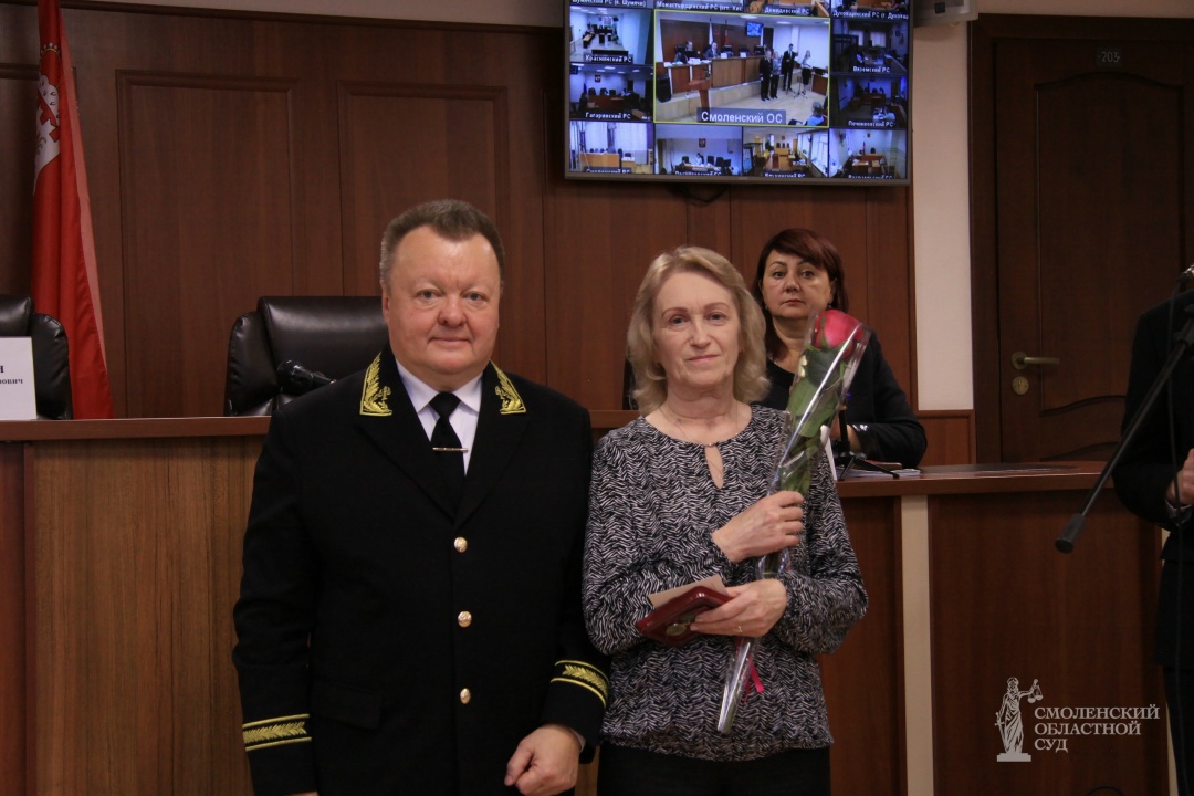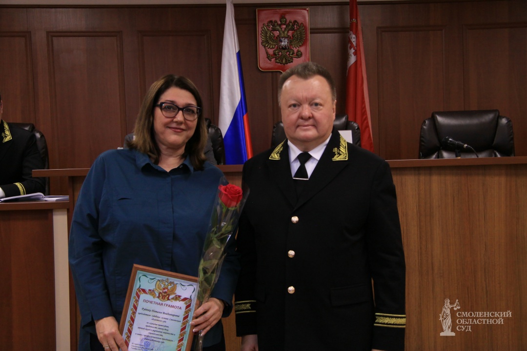 Почетные грамоты Смоленского областного суда были вручены Ивченковой Е.М. – судье судебной коллегии по уголовным делам Смоленского областного суда, Руденко Н.В.–председателю судебного состава, судья судебной коллегии по гражданским делам Смоленского областного суда.