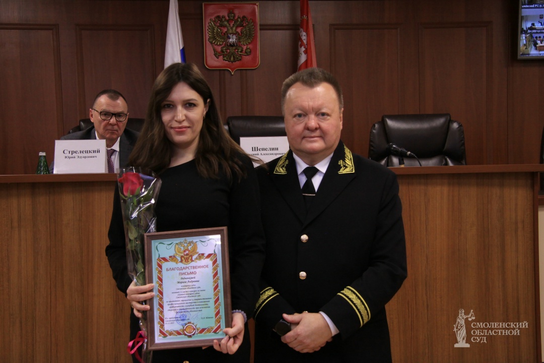 Благодарственное письмо председателя Смоленского областного суда Е.А Шепелина вручено Редченковой М.А. – помощнику судьи Смоленского областного суда.