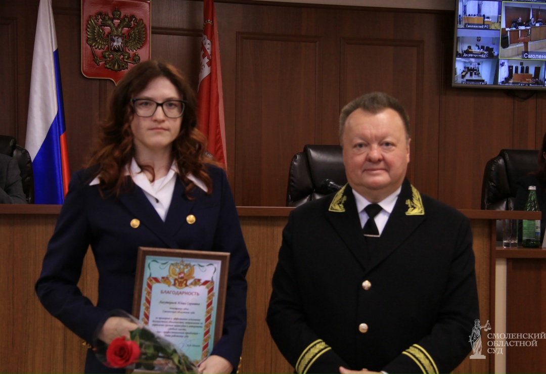Благодарность Смоленского областного суда объявлена Лазуткиной Ю.С. – помощнику судьи Смоленского областного суда.