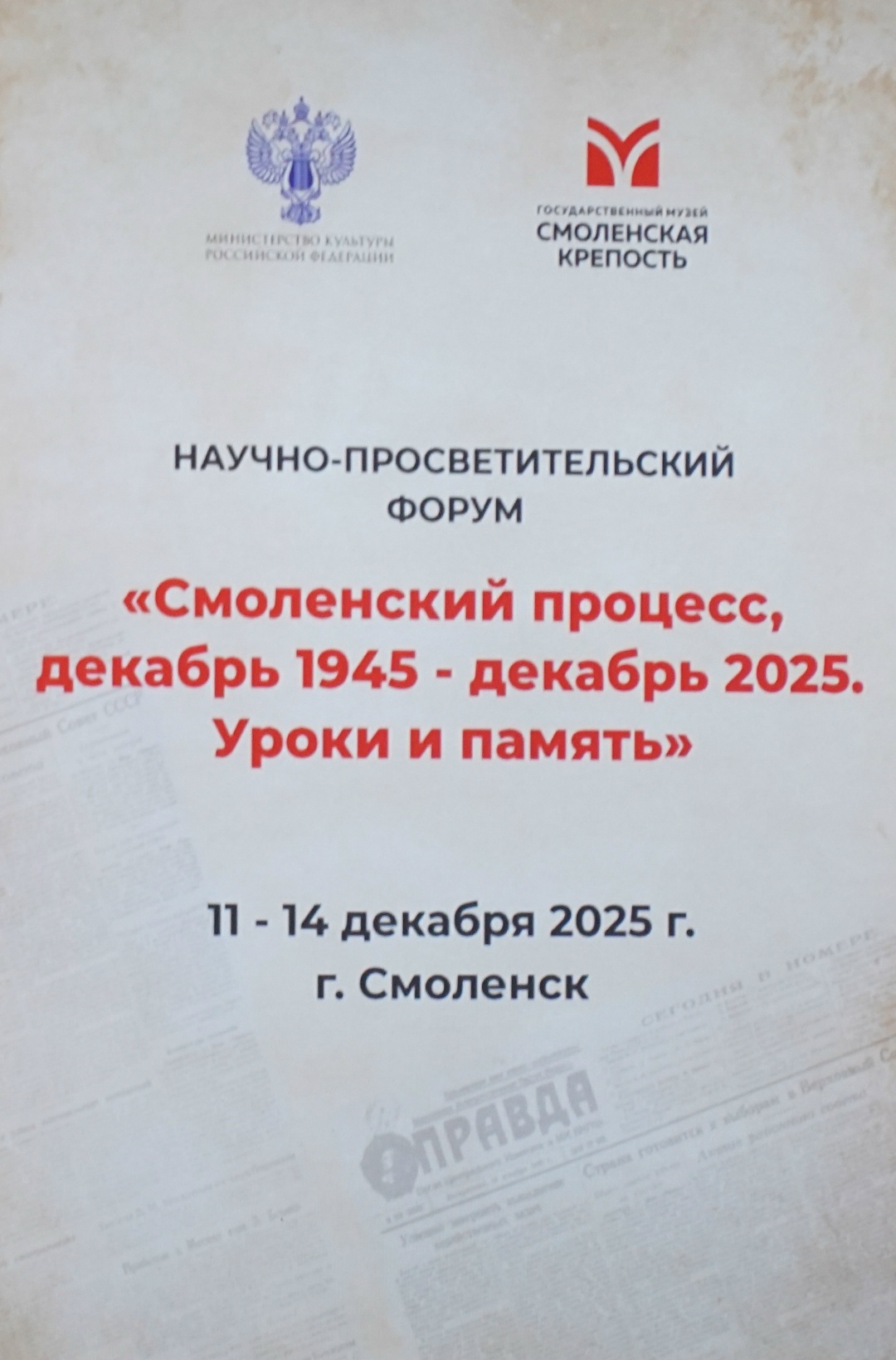 11 декабря 2025 года в первый день работы форума состоялся круглый стол «Процессы над нацистскими преступниками и их пособниками», на котором судья Смоленского областного суда в почетной отставке Бобрикова Л.В. выступила с докладом на тему «Судебный процесс об установлении факта геноцида в Смоленской области».