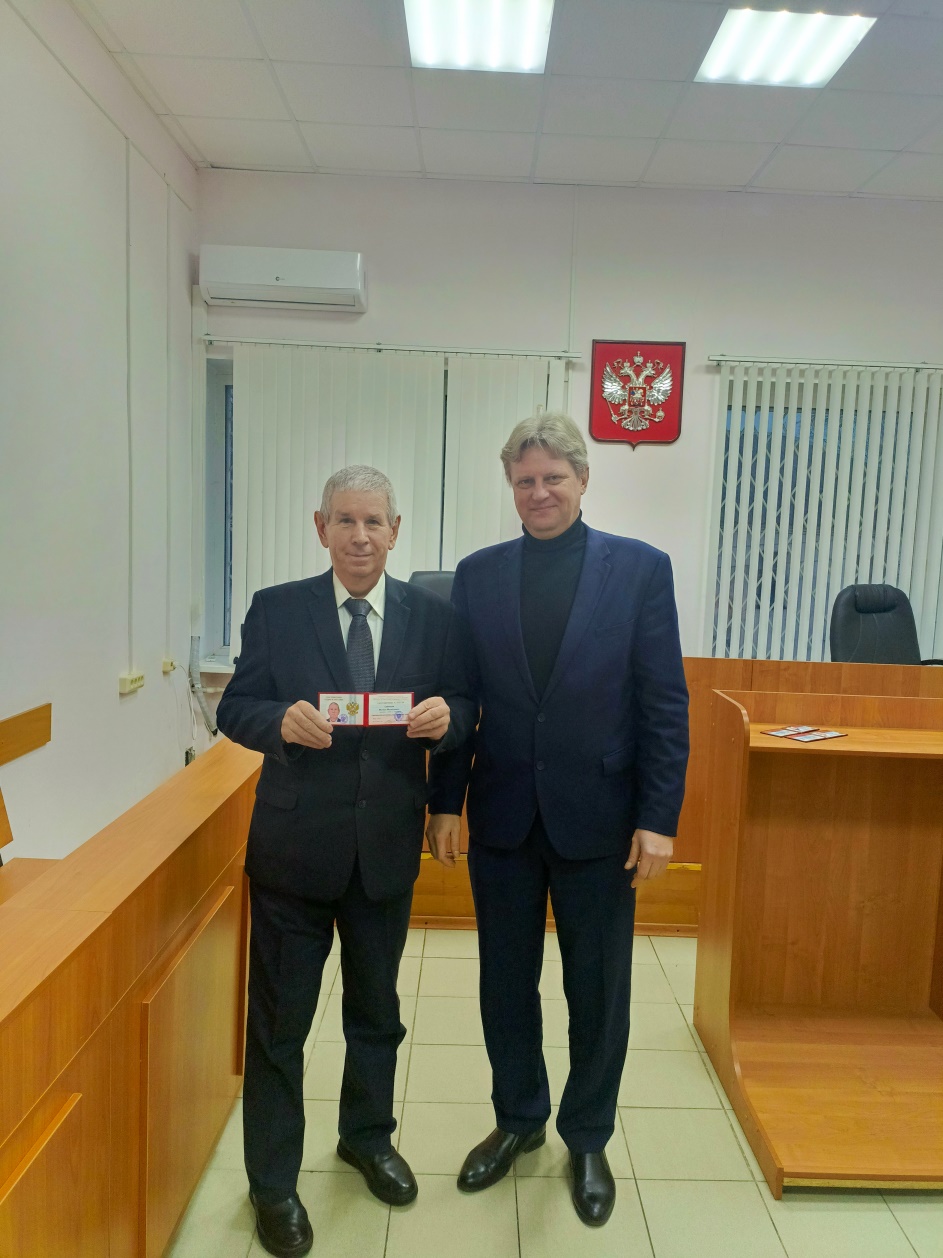 Председатель Сафоновского районного суда Смоленской области Соловьёв В.Г. в торжественной обстановке вручил удостоверение судьи в почетной отставке Сабанцеву Михаилу Михайловичу. Михаил Михайлович неустанно трудился в юридической сфере на протяжении 44 лет, при этом его стаж в должности судьи составил более 23 лет. Начал Михаил Михайлович свое служение правосудию с мировой юстиции. Решением Смоленской областной Думы № 166 от 04.06.2001 года он был назначен на должность мирового судьи судебного участка № 24 Сафоновского района Смоленской области. С 2006 года и по настоящее время Сабанцев М.М. работал судьей Сафоновского районного суда. 24.07.2025 года на основании подпункта 1 пункта 1 статьи 14 Закона Российской Федерации «О статусе судей в Российской Федерации» и в связи с достижением предельного возраста пребывания в должности судьи принято решение о прекращении полномочий судьи Сафоновского районного суда Смоленской области Сабанцева Михаила Михайловича в связи с уходом в почетную отставку. За время работы в судебной системе Михаил Михайлович зарекомендовал себя как высококвалифицированный специалист и достойный представитель юридической профессии. Его трудовая деятельность характеризуется исключительной ответственностью, добросовестным отношением к служебным обязанностям и высоким уровнем профессионализма. Председатель Сафоновского районного суда Смоленской области Соловьёв В.Г. от всей души поздравил Михаила Михайловича с выходом в почетную отставку и выразил огромную благодарность и безграничную признательность за его самоотверженный труд на пути служению правосудию.