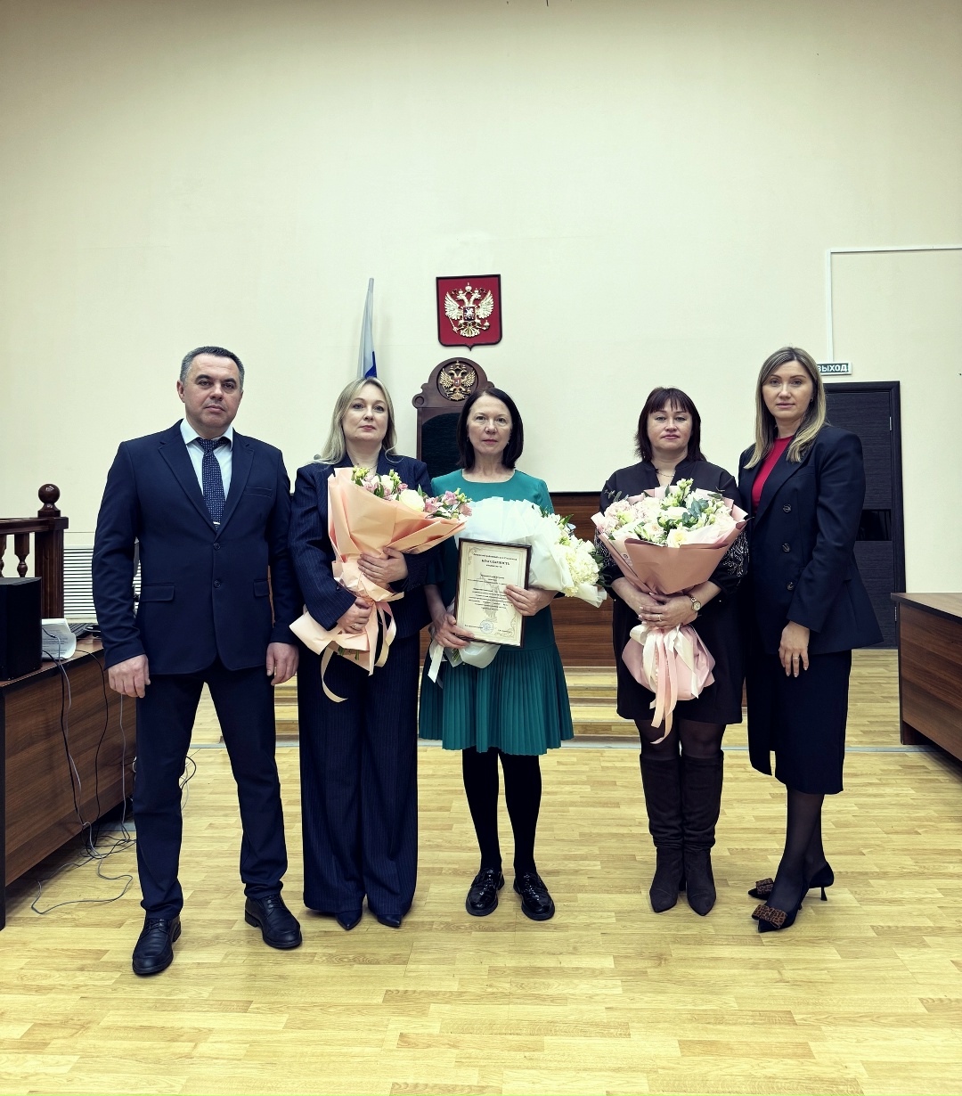 30.01.2026 в Ленинском районном суде г. Смоленска состоялось собрание, посвященное сразу трем важным событиям. В торжественной обстановке коллектив суда поздравил судью Лялину Ольгу Николаевну в связи с назначением на должность судьи Арбитражного суда Смоленской области. В ответном слове Ольга Николаевна поблагодарила коллег за совместную работу. Также в торжественной обстановке проводили в почетную отставку судью Шевцову Наталью Григорьевну. В адрес Натальи Григорьевны от коллег прозвучали теплые слова поздравлений и пожелания крепкого здоровья, долголетия и благополучия. И.о. председателя Ленинского районного суда г. Смоленска Михайлов Д.В. выразил признательность судье за ее высокий профессионализм и продолжительную (около 24 лет) безупречную работу в Ленинском районном суде г. Смоленска. В ответном слове Наталья Григорьевна выразила слова благодарности всем, кто был рядом с ней на протяжении ее профессиональной деятельности. Кроме того, в связи с уходом на пенсию были принесены поздравления и выражена благодарность Мироновой Елене Петровне, начальнику отдела обеспечения судопроизводства по гражданским делам, проработавшей в Ленинском районного суде г. Смоленска более сорока лет.