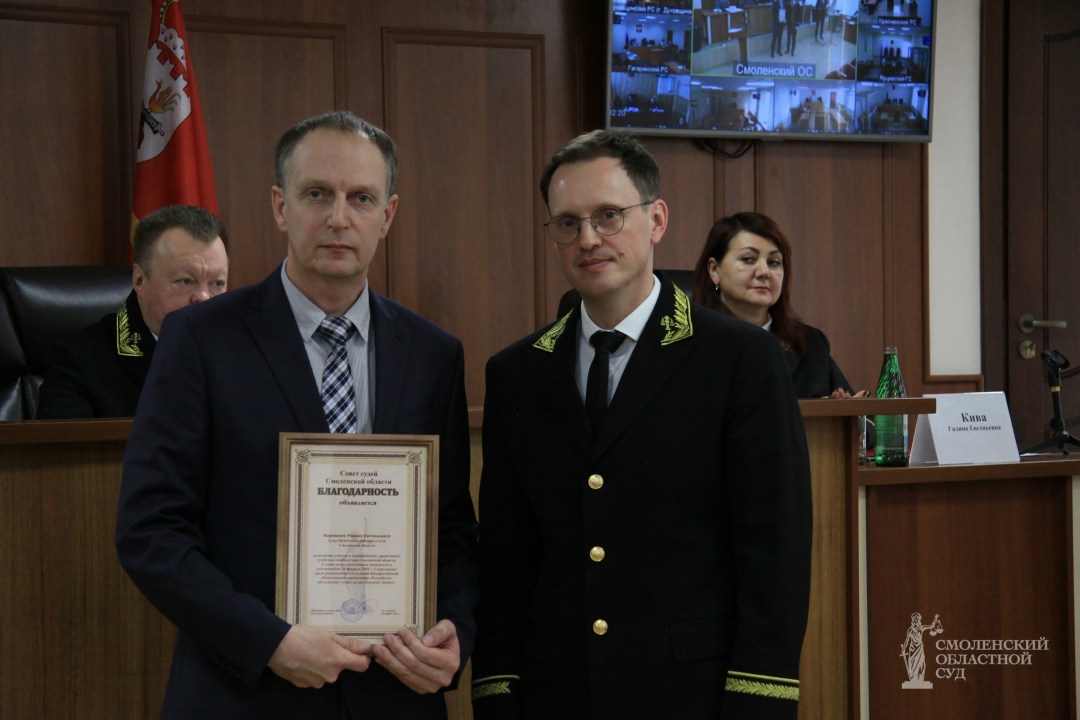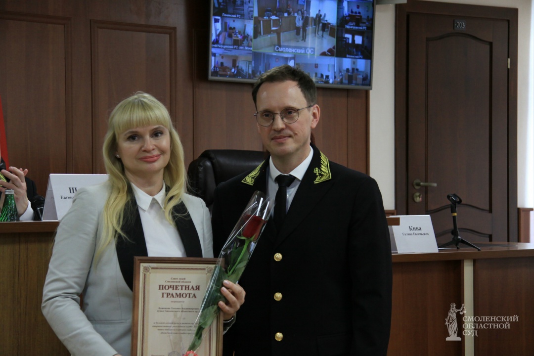 За высокие результаты в деле организационного обеспечения деятельности судов и образцовое исполнение служебных обязанностей Почетной грамоты удостоена Кузнецова Александра, занимавшая должность начальника отдела кодификации и судебной статистики Смоленского областного суда, ныне судья Заднепровского районного суда города Смоленска. Кроме того, за добросовестное исполнение должностных обязанностей и личный вклад в обеспечение судопроизводства ряд сотрудников был отмечен Благодарностью Совета судей Смоленской области. В их числе: Вовенко Елена – председатель Сычевского районного суда Смоленской области; Чайковская Оксана – помощник председателя Дорогобужского районного суда Смоленской области; Стародворцева Екатерина – помощник председателя Монастырщинского районного суда Смоленской области; Шаповалова Олеся – заместитель начальника отдела судопроизводства Смоленского районного суда Смоленской области; Тарасова Светлана – помощник судьи Дорогобужского районного суда Смоленской области; Михаленкова Светлана – помощник судьи Ленинского районного суда города Смоленска; Максименков Алексей – консультант Починковского районного суда Смоленской области; Орещенкова Юлия – старший специалист 1 разряда Руднянского районного суда Смоленской области; Бобылева Елена – секретарь Монастырщинского районного суда Смоленской области. За участие в мероприятиях Совета судей, а также за высокие результаты в Спартакиаде среди региональных отделений Общероссийской общественной организации «Российское объединение судей» по настольному теннису, состоявшейся 28 февраля 2026 года, Благодарностью Совета судей награжден Воронков Роман – судья Вяземского районного суда Смоленской области.