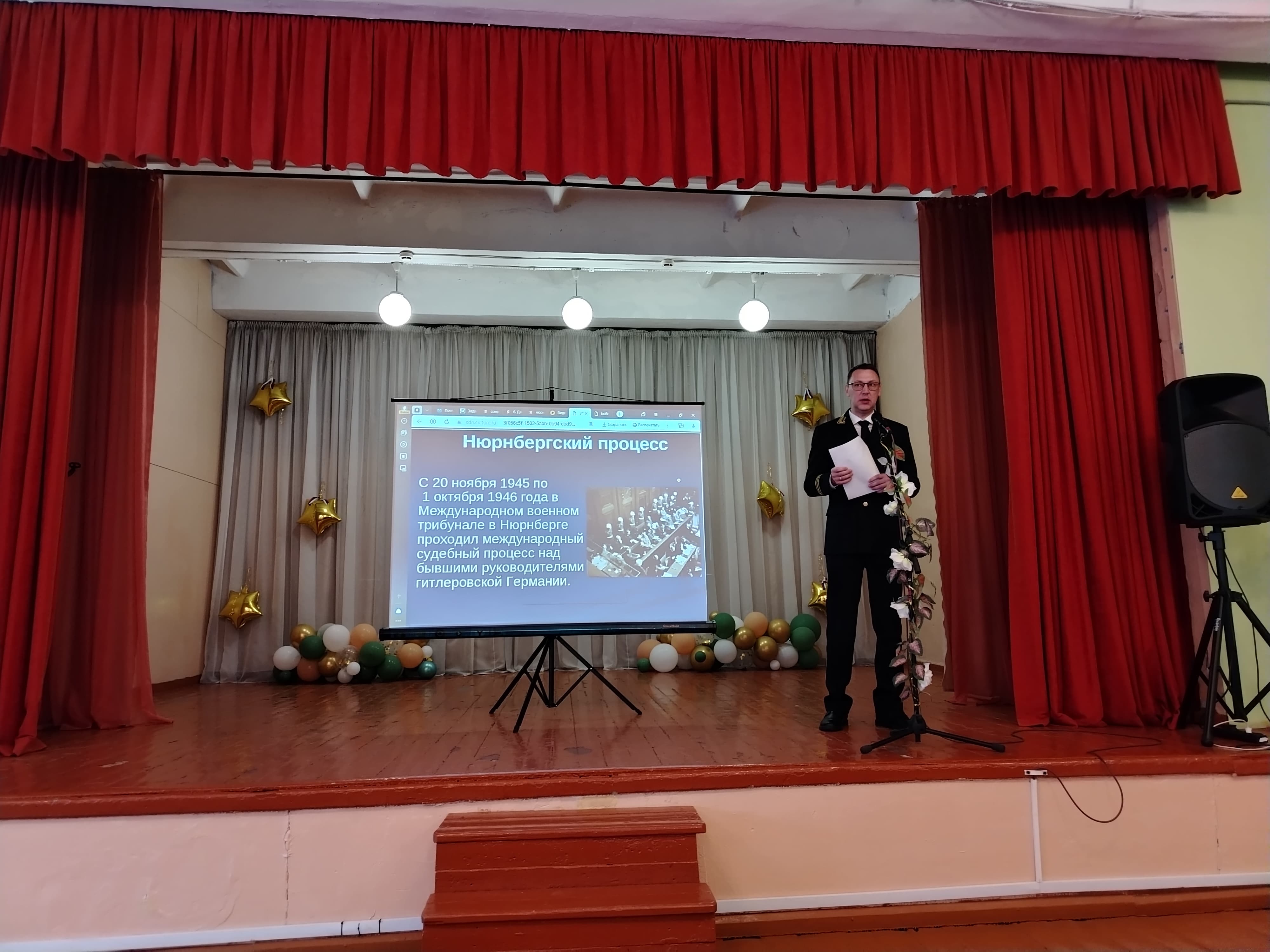В ходе урока ребята просмотрели видеоролик, который помог им погрузиться в историю Второй мировой войны, узнали об ужасающих преступлениях нацистского режима и о том, как Нюрнбергский процесс стал символом справедливости, верховенства закона и правосудия, а также важнейшим судебным процессом ХХ столетия, юридически закрепившим окончательный разгром фашизма, положившим начало процессу демилитаризации и денацификации гитлеровской Германии. Александр Вячеславович рассказал об отличиях Нюрнбергского процесса от «Лейпцигского трибунала» 1921 года, состоявшегося по итогам Первой мировой войны, о фигурантах Нюрнбергского процесса, о ходе судебных заседаний, об объеме исследованных доказательств, а также о принятом итоговом судебном акте, вынесенном в отношении нацистских лидеров. Особое внимание было уделено свидетельствам и доказательствам бесчисленных страданий жертв нацизма. Нюрнбергский процесс подтвердил, что террор и агрессия, направленные против мирного населения, никогда не останутся безнаказанными. Встреча стала не просто исторической экскурсией, а поводом к размышлению о важности толерантности, гуманизма и неприятия фашизма в современном мире. Учащиеся сделали вывод, что память о прошлом – это не просто урок истории, а важный фактор формирования нравственных ценностей и предотвращения повторения трагедий.
