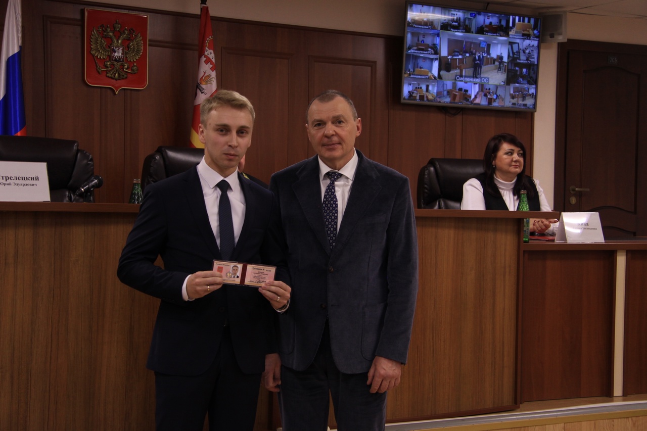 В ходе совещания в Смоленском областном суде Главным федеральным инспектором по Смоленской области аппарата полномочного представителя Президента Российской Федерации в Центральном федеральном округе Стрелецким Ю.Э. вручены служебные удостоверения председателю Демидовского районного суда Смоленской области Цветкову А.Н., председателю Монастырщинского районного суда Смоленской области Мильченко Е.А., председателю Промышленного районного суда г. Смоленска Ломакину А.В., заместителю председателя Промышленного районного суда г. Смоленска Новикову М.В., заместителю председателя Ярцевского городского суда Смоленской области Коржаковой О.И., судье Смоленского районного суда Смоленской области Тишкину Р.Н., судье Арбитражного суда Смоленской области Козлову А.А., назначенным Указом Президента Российской Федерации от 21 февраля 2025 года № 93 «О назначении судей федеральных судов и о представителе Президента Российской Федерации в квалификационной коллегии судей Калужской области».
