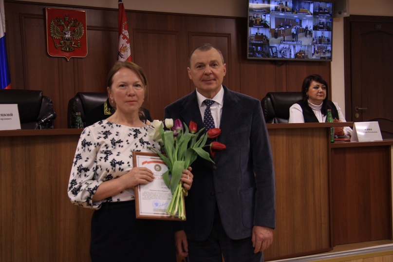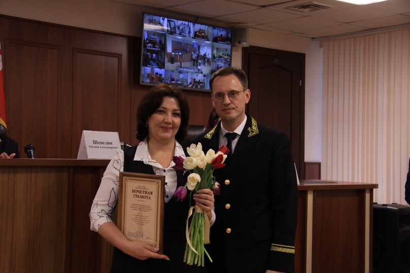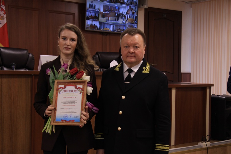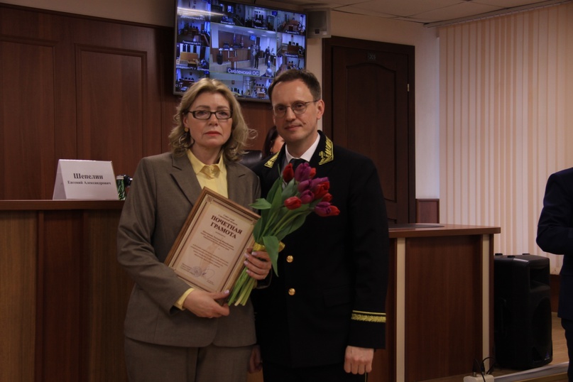 Заместитель председателя Смоленского областного суда, председатель Совета судей Смоленской области Киселев А.С. вручил Почетные грамоты Совета судей региона судье, председателю судебного состава Смоленского областного суда, заместителю председателя Совета судей Смоленской области, председателю Дисциплинарной комиссии Совета судей Смоленской области Шитиковой Т.М., а также консультанту отдела материально-технического обеспечения Ленинского районного суда г. Смоленска Камышевой М.В.