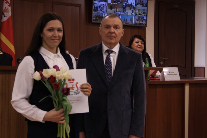 Благодарственным письмом Губернатора Смоленской области Анохина В.Н. награждены заместитель председателя Промышленного районного суда г. Смоленска Рожкова Н.В. и начальник отдела обеспечения судопроизводства по гражданским делам Ленинского районного суда г. Смоленска Миронова Е.П. Почетной грамотой Смоленской областной Думы награждены помощник мирового судьи судебного участка № 12 в городе Смоленске Ильина И.В. и помощник мирового судьи судебного участка № 45 в муниципальном образовании «Смоленский муниципальный округ» Смоленской области Феденкова Е.Г. Благодарственным письмом Смоленской областной Думы награждена мировой судья судебного участка № 42 в муниципальном образовании «Починковский муниципальный округ» Смоленской области Войтенкова Е.А.