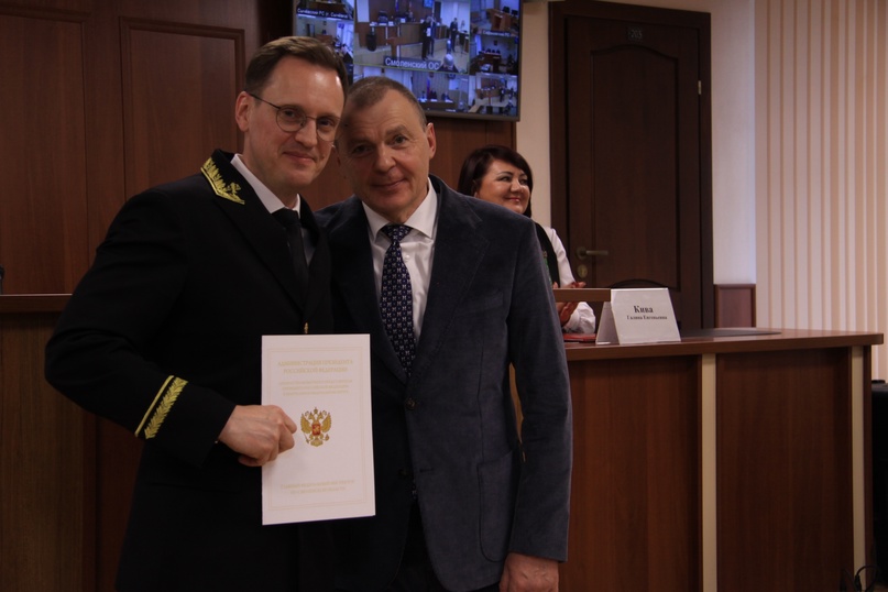 За достижение значительных профессиональных успехов в деле отправления правосудия, защиты прав и законных интересов граждан и обеспечения судопроизводства Благодарственные письма Главного федерального инспектора по Смоленской области Стрелецкого Ю.Э. вручены Капустину Олегу Александровичу – председателю Смоленского районного суда Смоленской области; Иванову Дмитрию Николаевичу – судье Ленинского районного суда г. Смоленска; Лакеенковой Елене Васильевне – судье Рославльского городского суда Смоленской области.