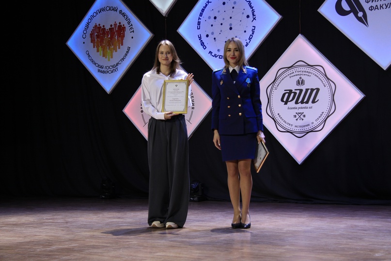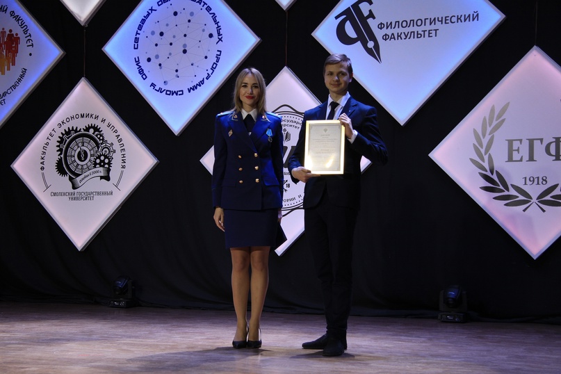 В рамках финального мероприятия, которым завершился второй сезон конкурса «Смоленская школа правосудия», отдельно были отмечены участники, проявившие свое актерское мастерство и знания в сфере юриспруденции при участии в конкурсе игровых судебных процессов. Победители в номинациях «За лучшее воплощение образа…» были награждены представителями соответствующих ведомств и структур.