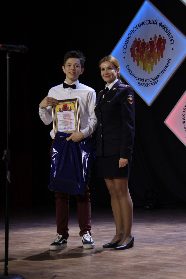 УМВД России по Смоленской области – в номинации «Лучшее воплощение образа сотрудника полиции» ученик Средней школы № 1 Ярцевского муниципального округа Смоленской области Кулев Филипп.