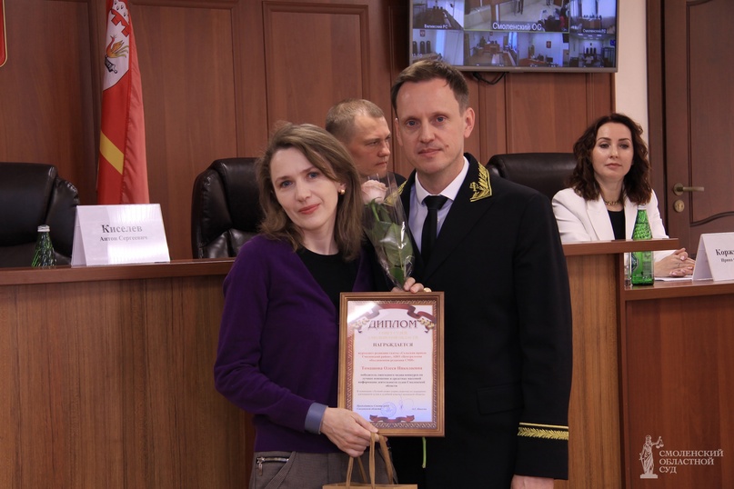 Данное мероприятие проводится ежегодно и является площадкой для диалога между судейским сообществом региона журналистами и различными редакциями, способом обсуждения актуальных тем, вопросов сотрудничества, возможности оптимизации взаимодействия и дальнейшего укрепления правовой интеграции в области. Сегодня обсуждалась тема «Суд и медиа: возможности и перспективы взаимодействия». Участие в заседании круглого стола приняли: председатель Совета судей Смоленской области, заместитель председателя Смоленского областного суда Киселев Антон Сергеевич, председатель Смоленского районного суда Смоленской области, председатель Комиссии Совета судей Смоленской области по связям с государственными органами, общественными организациями и СМИ, к.ю.н. Капустин Олег Александрович, судья Арбитражного суда Смоленской области, член Совета судей Смоленской области Яковлев Дмитрий Евгеньевич, мировой судья судебного участка № 12 в г. Смоленске, член Совета судей Смоленской области Коржакова Ирина Сергеевна. От журналистского сообщества среди участников круглого стола присутствовали: главный редактор «Смоленской народной газеты», лектор Российского общества «Знание» Кудрявкина Елена Леонидовна и журналист сетевого издания «SmolNarod.ru», блогер Захаров Максим Алексеевич. В качестве приглашенных гостей в зале присутствовали начальник Службы по обеспечению деятельности мировых судей Смоленской области Колесников Роман Александрович и начальник отдела ОПОДС Управления Судебного департамента в Смоленской области Баженова Янина Анатольевна, а также представители редакции ведущих СМИ региона. С использованием систем видео-конференц-связи в мероприятии участвовали председатели и судьи всех районных (городских) судов области, представители средств массовой информации и лица, ответственные за взаимодействие со СМИ в судах нашей области. С приветственным словом к участникам круглого стола обратился председатель Совета судей Смоленской области, заместитель председателя Смоленского областного суда Киселев Антон Сергеевич, который поблагодарил от себя лично и от имени председателя Смоленского областного суда Шепелина Евгения Александровича присутствующих за проявленный интерес к заявленной теме и выразил надежду на дальнейшее эффективное сотрудничество. Он отметил, что такое взаимодействие важно для прозрачности судебной системы и повышения уровня доверия общества к судопроизводству. Суд стремится обеспечить доступ общественности к актуальной информации о своей деятельности, а также способствовать объективному освещению происходящих процессов в средствах массовой информации. Затем Антон Сергеевич вручил дипломы и призы победителям ежегодного медиа-конкурса среди журналистов, освещающих судебную тематику.