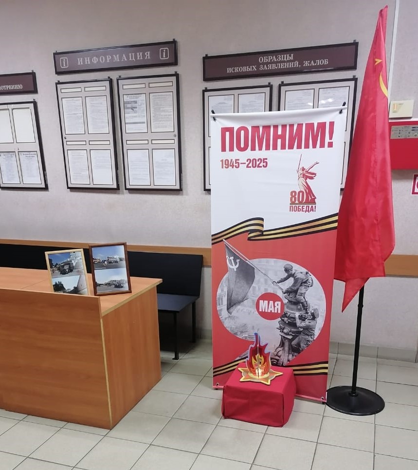 В холле здания суда, расположенного в пгт. Холм-Жирковский, появилась тематическая экспозиция, посвященная 80-летию со Дня Победы в Великой Отечественной Войне 1941-1945 гг.
